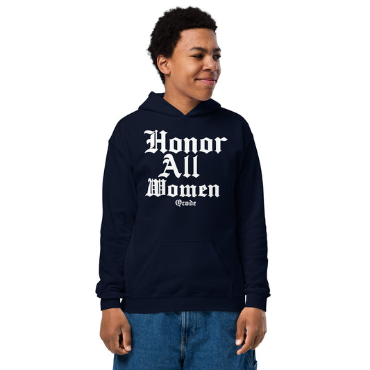 The Quran teaches that men and women have equal rights, each with distinct roles, but as equal partners in life, marriage, and parenthood. This design serves as a timeless reminder to honor and celebrate the vital role women play in all our lives.Experience ultimate comfort and durability with the youth heavy blend hoodie. Ideal for active children, this hoodie, crafted from breathable cotton and tough polyester, is designed to resist wear and frequent washing. Featuring minimal pilling fleece and a handy front pouch pocket, it’s a reliable addition to any child’s wardrobe. No drawcords ensure safety. Upgrade your child’s comfort today!